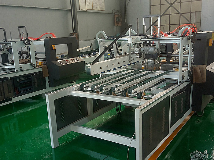 全自動粘箱機是從紙板送入、糾偏、痕線整形、涂膠、折疊、加壓、對正、計數(shù)排出等工序全部由機械自動一次完成的機械裝置。它的特點就可使紙箱企業(yè)減少對大量熟練粘箱工人的依賴,節(jié)省工作場地,又大大提高了工作效率和產(chǎn)品質(zhì)量。全自動粘箱機的前端能夠連線上印式或下印式的水印開槽模切機,后端能夠連線全自動捆包機和全自動碼垛機。