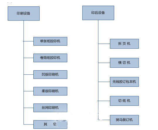 印刷行業(yè)的設備主要分為印刷設備和印后設備。印刷設備主要包含五類:單張紙膠印機、卷筒紙膠印機、凹版印刷機、柔版印刷機平、絲網(wǎng)印刷機。其中以凹版印刷機和絲網(wǎng)印刷機為目前的主流設備。